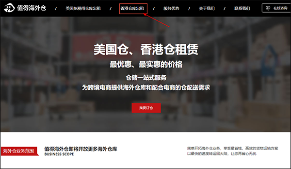 不知道怎么租賃香港倉庫的電商首先進入值得海外倉庫的官方網站:http://www.045692.cn/,在租賃之前最好先看一下公司的業務(公司介紹、業務范圍、開倉流程等)可以咨詢在線客服,詢問租賃香港倉庫的相關事宜。頁面還收錄著優質客戶對公司的反饋,賣家也可以參考看看。然后點擊立即訂倉,在客服的指導下完善信息即可!